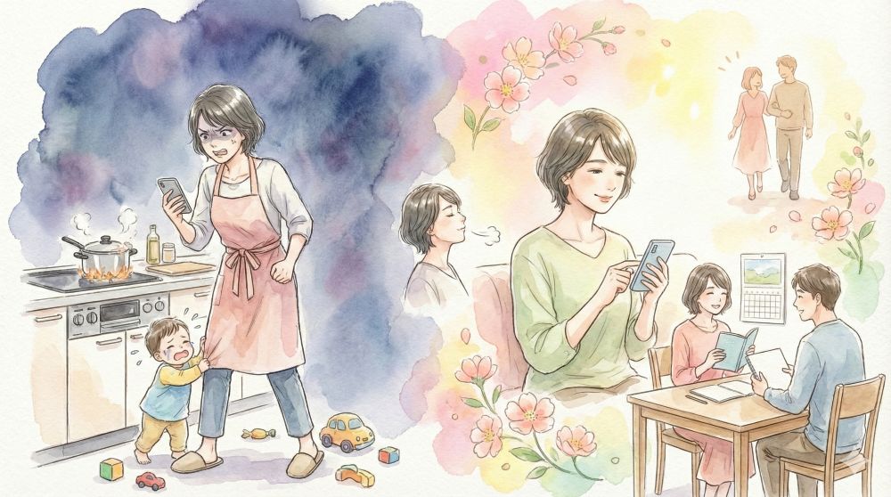 もう作り始めてしまった夕飯、ワンオペが確定したお風呂と寝かしつけ…。怒りと徒労感で、スマホを握りつぶしそうになっていませんか?