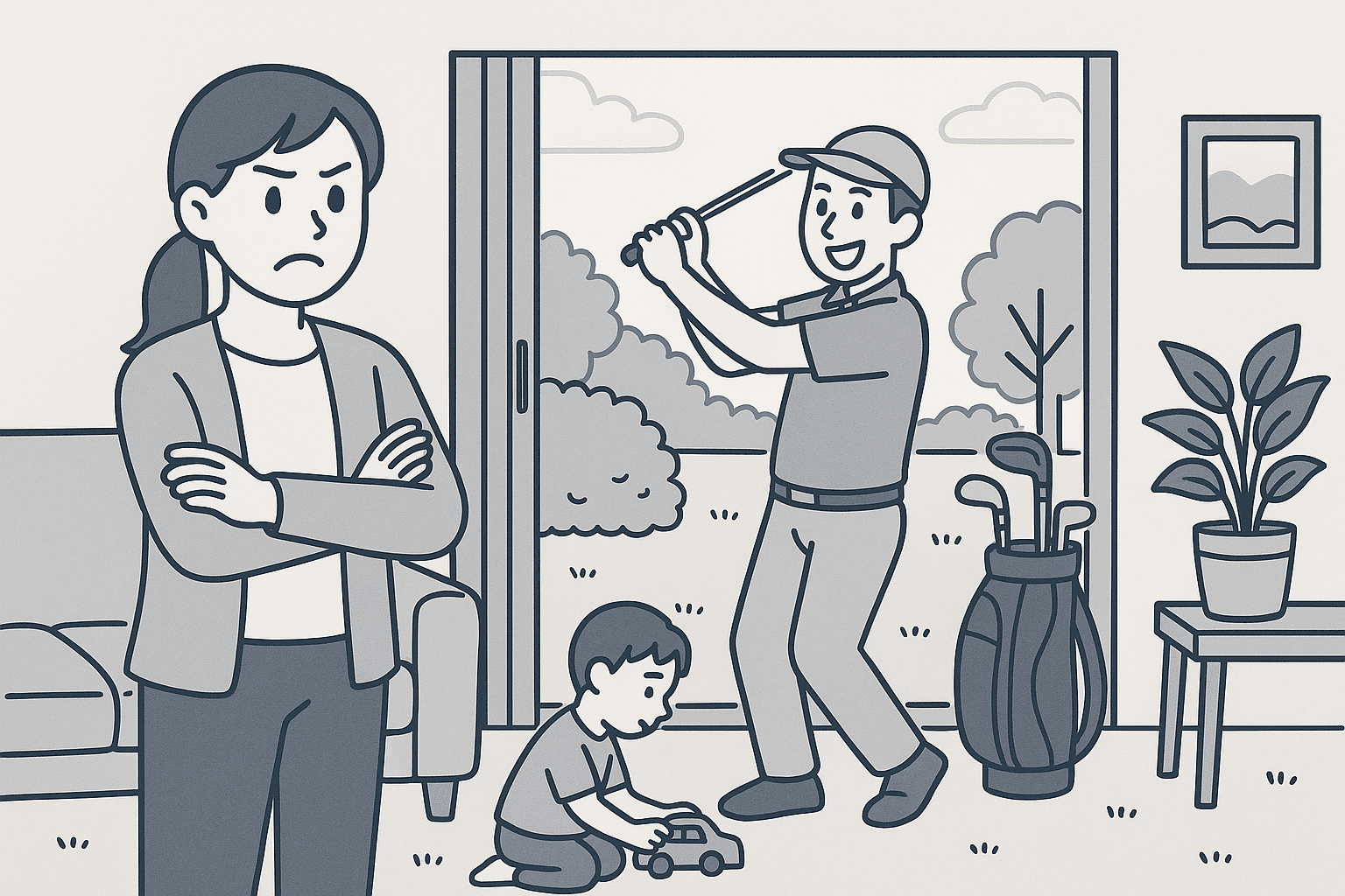 貴重な週末、朝早くから一人で釣りやゴルフに出かけていき、あなたは丸一日ワンオペ育児…。