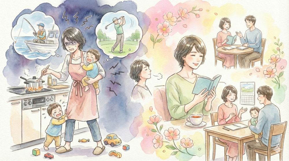この圧倒的な時間の非対称性が、「なんで私ばっかり我慢しなきゃいけないの!」という不公平感を生み、怒りの最大の原因になります。夫が趣味を楽しめば楽しむほど、あなたの心の中には「ずるい」という黒い感情が溜まっていくのです。