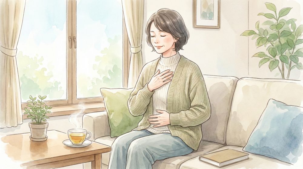 「吐く」動作は副交感神経を高めます。まずは体のスイッチを切り替えましょう。