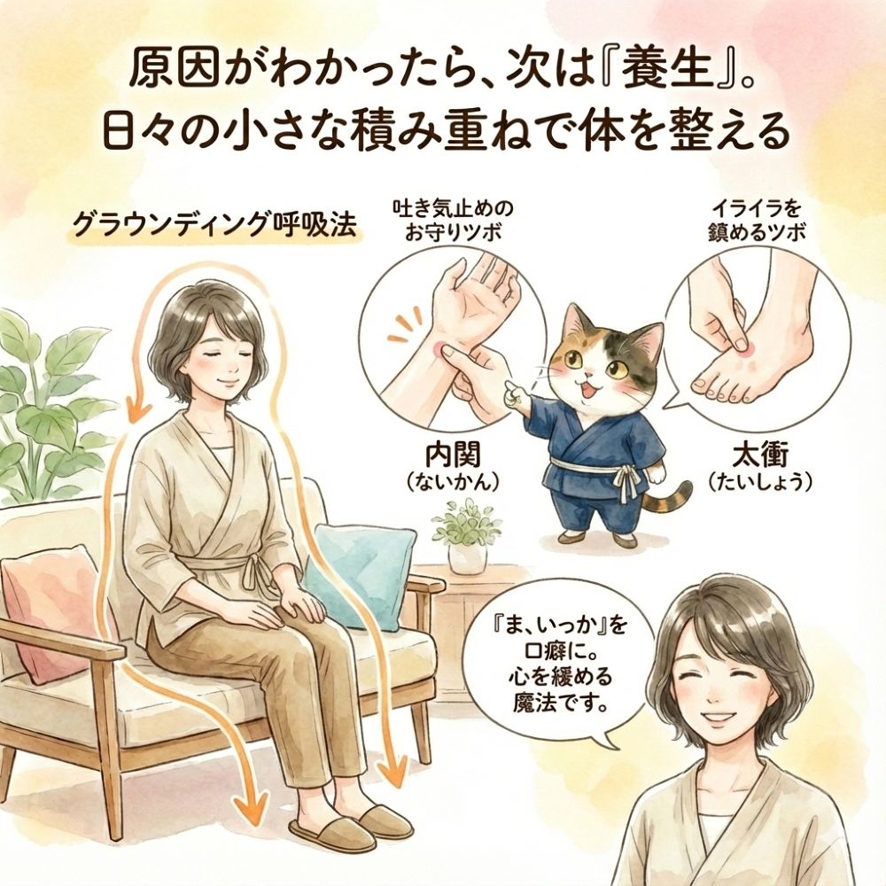 - 3. 今すぐできる!「気持ち悪さ」をその場で和らげる養生テクニック