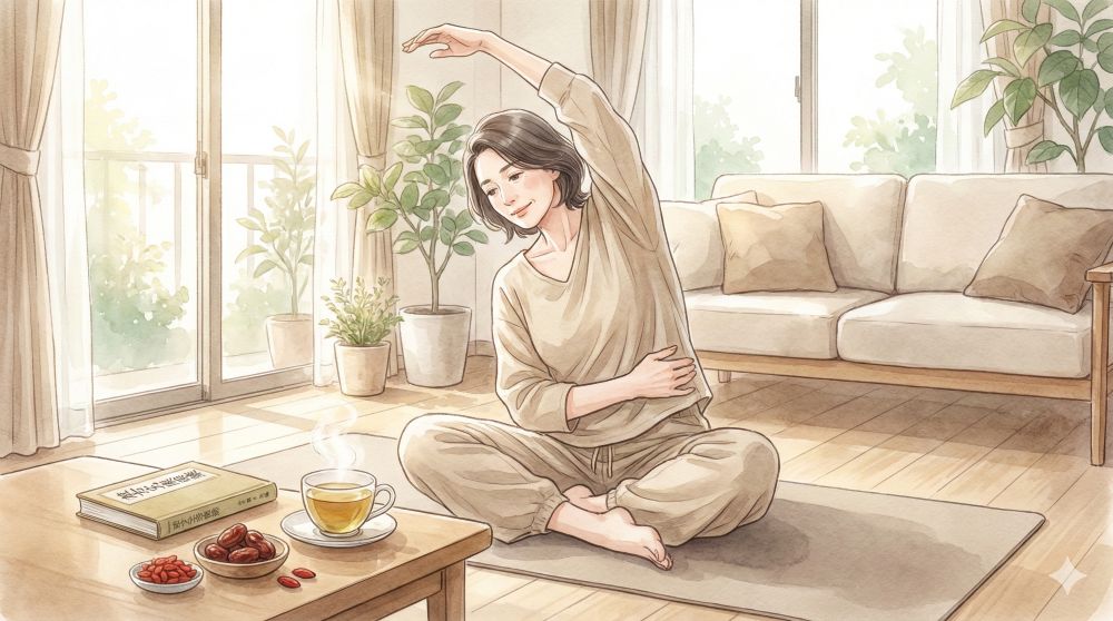 ゆっくりとした呼吸に合わせて、経絡を意識しながら体を伸ばす。これこそが、更年期世代に最適な「動く養生」なのです。