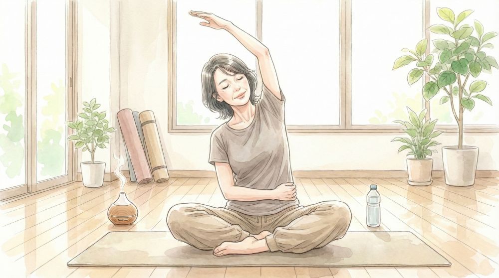 • 肝の経絡を伸ばす: 脇腹や股関節をストレッチし、イライラや筋肉の緊張を解きほぐします。