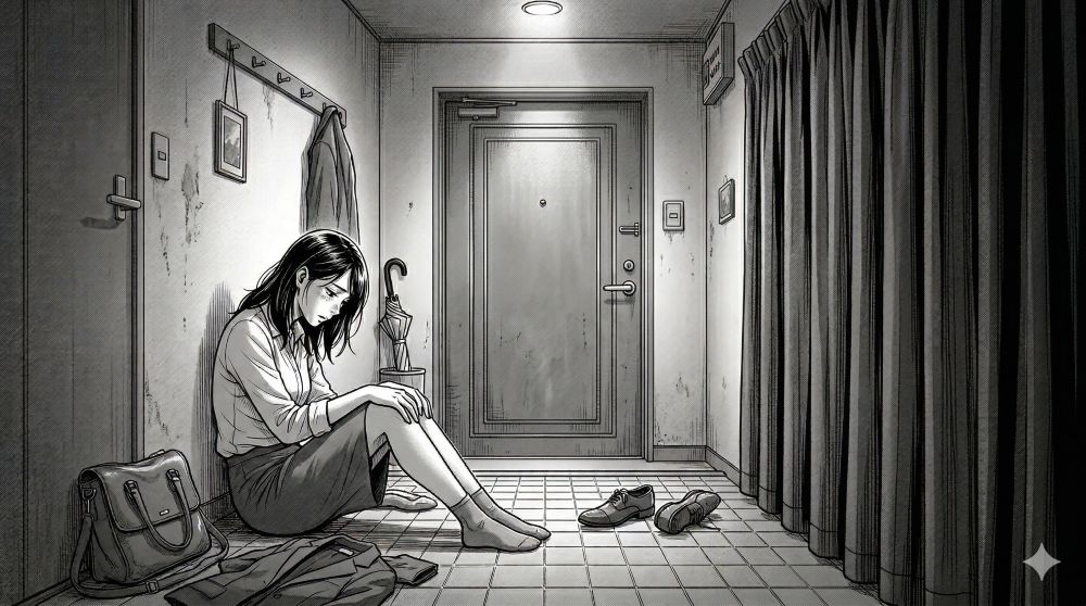 重い足取りで最寄り駅からアパートまでの道を歩き、鍵を開けて暗い部屋に入る。靴を脱ぐ気力すらなく、玄関の冷たい土間の上にへたり込んだ。