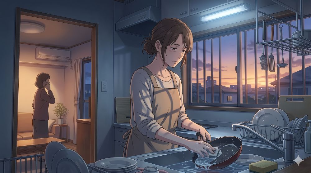 同居を始めてからずっとこうだ。家事の一切を私にやらせておきながら、裏では文句ばかり。それでも波風を立てまいと、私は自分の感情を押し殺して、黙々とフライパンを磨き続けた。