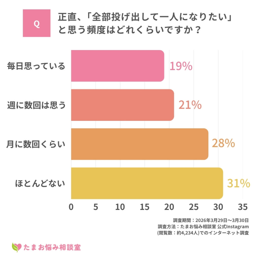 【質問】正直、「全部投げ出して一人になりたい」と思う頻度はどれくらいですか?